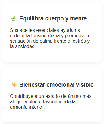 💜 Lavanda: el aroma de la serenidad, equilibra emociones y favorece la relajación profunda.